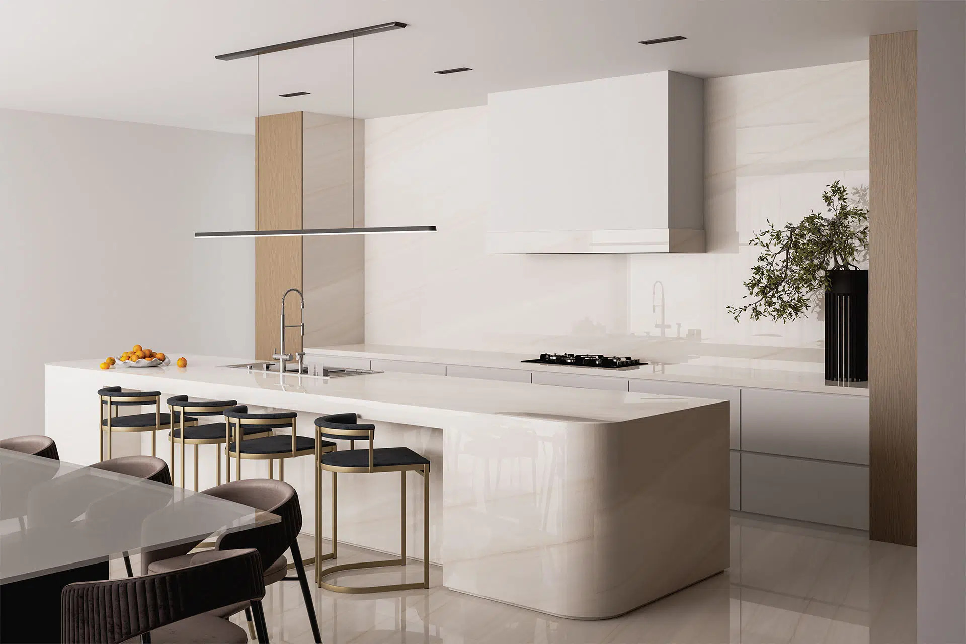 Bianco Lasa; her renkte mutfak mobilyası ile uyum sağlayan, narin damarlara sahip, son derece moda bir porselen yüzeydir.