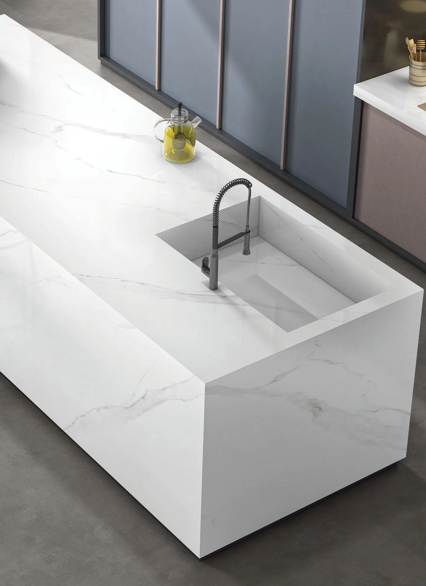 Porselen mutfak tezgahları, son yıllarda popülerliğini artıran bir trend haline gelmiştir. Bu tip tezgahlar, estetik görünüşlerinin yanı sıra dayanıklı yapısı ve kullanım kolaylıkları ile de dikkat çekerler. Porselen, ısıya ve aşınmaya karşı son derece dirençlidir. Yüksek sıcaklıklara maruz kaldığında deformasyona uğramaz, çizilmelere karşı dirençlidir ve leke tutmaz. Ayrıca, porselenin suya ve neme karşı da oldukça dayanıklı olması, su ve buharla sürekli temas halinde olan mutfak için en idealdir.