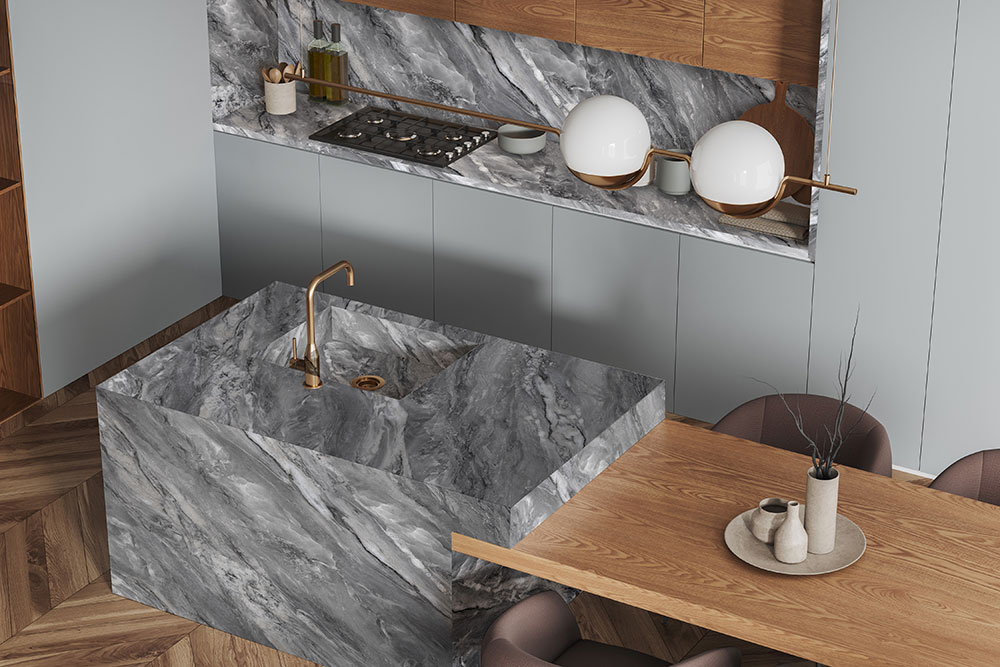 - Kullanım Alanları: Mutfak Tezgahı, Ada Üniteleri, Lobi Bankoları, Duvar Kaplamaları, Vitrin Tasarımları