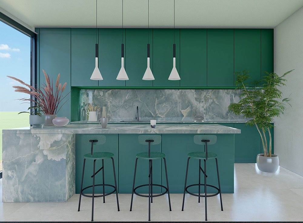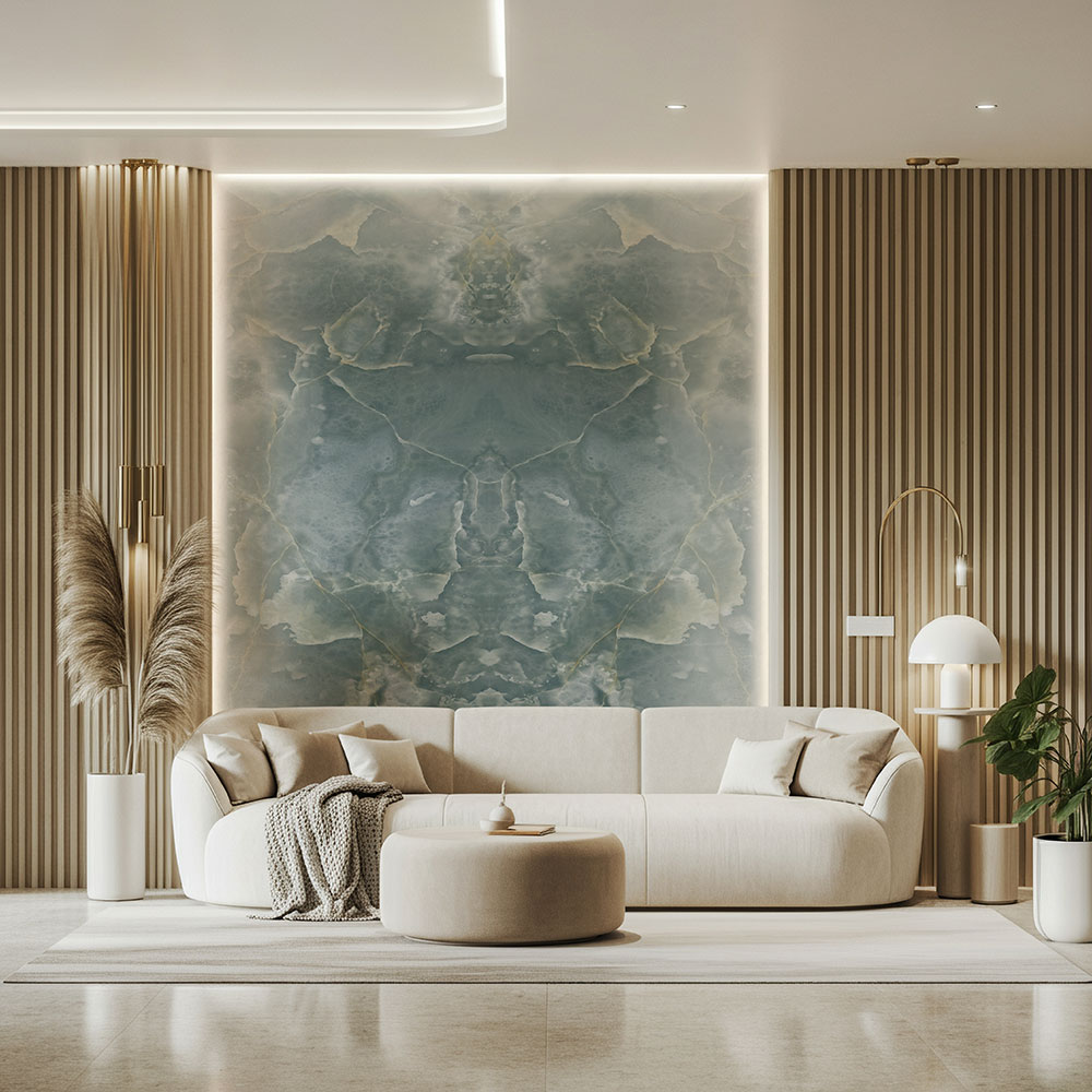 - Yumuşak Renk Geçişleri: Yeşilimsi-gri yüzey üzerinde beyaz damarlarla dengeli ve huzurlu bir görünüm sağlar.