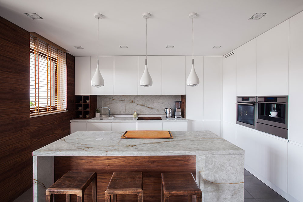Modern mutfak adaları, şık banyolar, lüks otel resepsiyonları ve iç cephe kaplamalarında sıkça tercih edilir.
