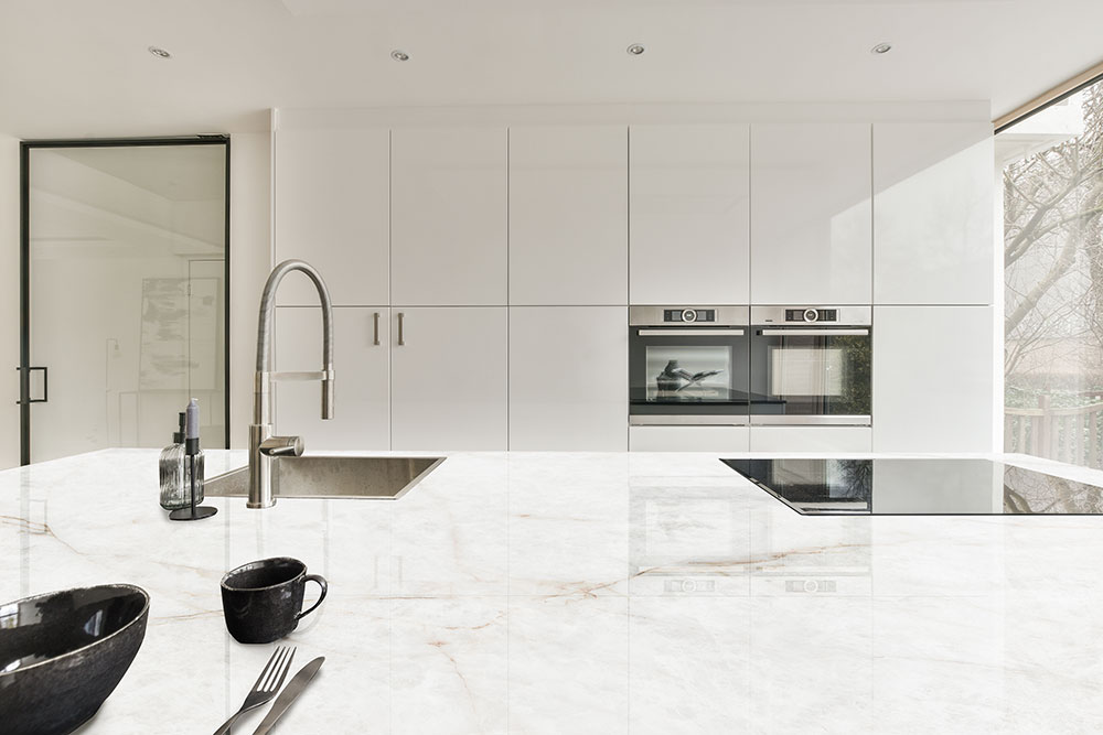 - Kristalimsi Buz Beyazı Yüzey: Doğal ışıkla etkileşim sağlayan dokusu, iç mekanlara ferahlık ve sofistike bir estetik katar.